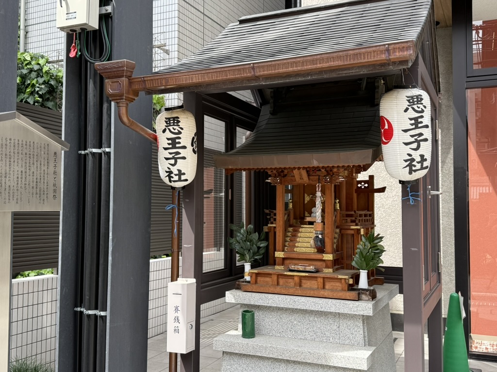 悪王子社は素戔嗚尊の荒魂を祀る社で、現在は八坂神社の境内にあります。